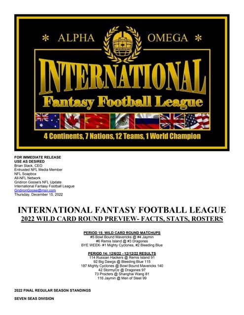 IFFL WEEK 10 PRESS INFORMATION | PDF