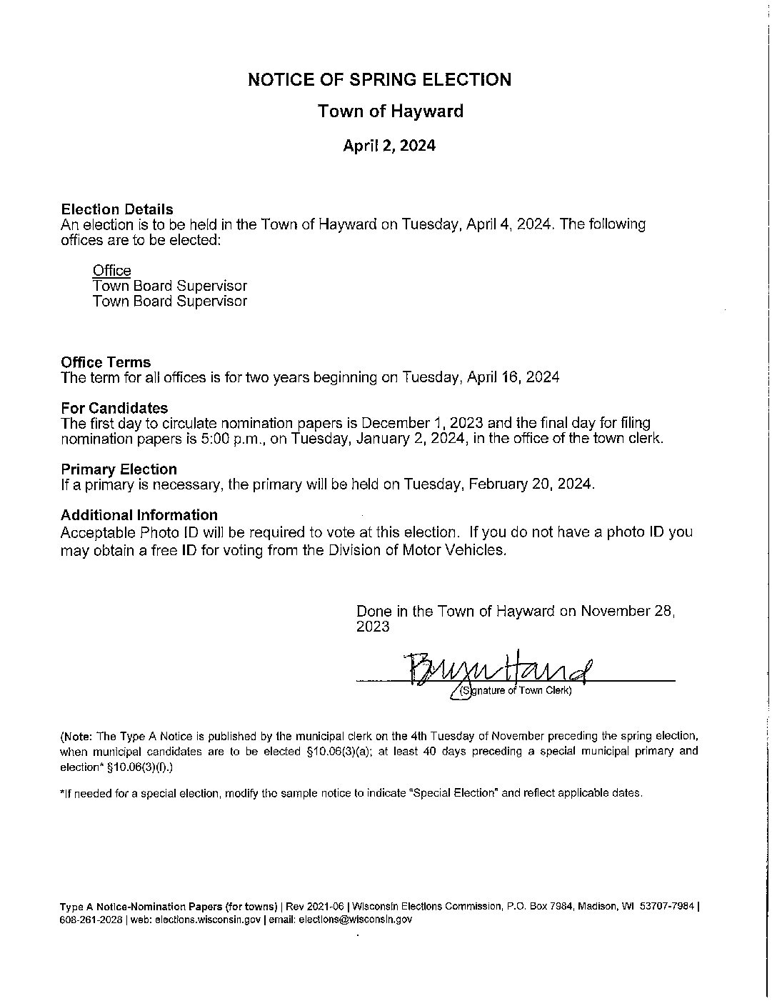 November 2023 โ Town of Hayward, Sawyer County, Wisconsin